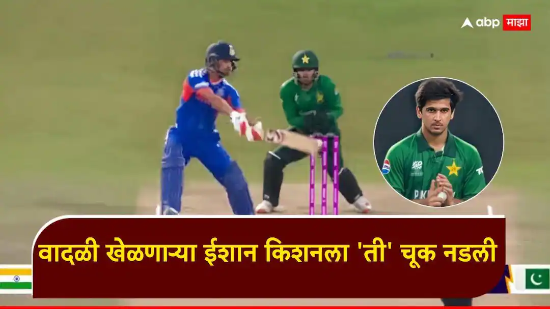 इशान किशन इंड विरुद्ध पाक T20 विश्वचषक 2026 : क्रिकेटच्या मैदानात जेव्हा ईशान किशन नावाचं वादळ घोंगावायला लागतं, तेव्हा समोरचा गोलंदाज कोण आहे यानं काहीच फरक पडत नाही. पाकिस्तान विरुद्ध आजच्या सामन्यातही हेच पाहायला मिळालं. पण, दुर्दैवानं हे वादळ जितक्या वेगाने आलं, तितक्याच अनपेक्षितपणे शांत झालं. शतकाच्या उंबरठ्यावर असताना ईशानने केलेली एक छोटीशी चूक त्याला आणि टीम इंडियाला भारी पडली आहे.