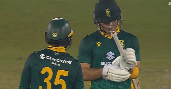 लक्ष्याचा पाठलाग करणाऱ्या आफ्रिकन संघाची सुरुवात खराब झाली. 26 धावांच्या स्कोअरवर क्विंटन डी कॉक 11 चेंडूत 8 धावांवर बाद झाला. त्यानंतर टेम्बा बावुमा आणि एडेन मार्कराम यांनी 101 धावांची भागीदारी केली. या सामन्यात बावुमा अर्धशतक हुकला, त्याने 48 चेंडूत 46 धावा केल्या. मात्र सलामीवीर एडेन मार्करामने शतक झळकावले. तो 98 चेंडूत 110 धावा करून बाद झाला. त्यानंतर मॅथ्यू ब्रिएट्झके आणि डेवाल्ड ब्रेव्हिस यांनी शानदार फलंदाजी केली, ज्यामुळे आफ्रिकन संघाचा धावांचा पाठलाग सोपा झाला. ब्रेव्हिस 54 आणि ब्रिएट्झके 68 धावांवर बाद झाले. अखेर दक्षिण आफ्रिकेसाठी कॉर्बिन बॉशने उर्वरित काम केले. बॉश 15 चेंडूत 26 धावा करून नाबाद राहिला.