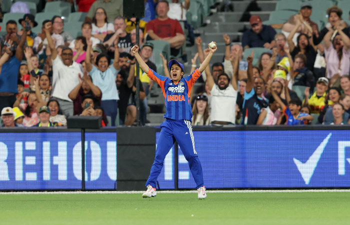 अॅडलेडमध्ये खेळल्या गेलेल्या या सामन्यात टीम इंडियाने नाणेफेक जिंकत फलंदाजी करण्याचा निर्णय घेतला होता. प्रथम फलंदाजी करताना टीम इंडियाने 6 गड्यांच्या मोबदल्यात 176 धावा केल्या आणि ऑस्ट्रेलियाला जिंकण्यासाठी 177 धावांचे आव्हान दिले होते. स्मृती मानधनाने 55 चेंडूंमध्ये 8 चौकार आणि 3 षटकारांच्या मदतीने 82 धावांची खेळी केली. तर जेमिमाने 46 चेंडूंमध्ये 59 धावा केल्या. प्रत्युत्तरात ऑस्ट्रेलियाची सुरुवात खराब झाली. टीम इंडियाच्या गोलंदाजांनी अचूक मारा केल्यामुळे ऑस्ट्रेलियाला 20 षटकांमध्ये 159 धावांवर रोखण्यात यश आलं. श्री चरणी आणि श्रेयंका पाटील यांनी प्रत्येकी 3-3 विकेट घेतल्या. तर अरुंदती रेड्डीने 2 आणि रेणुका सिंग ठाकूरने 1 विकेट घेत संघाचा विजय निश्चित केला.