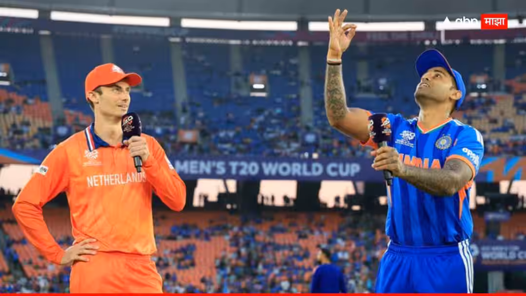 भारत विरुद्ध नेदरलँड T20 विश्वचषक 2026 : भारत आणि नेदरलँड्स यांच्यातील टी-20 वर्ल्ड कप 2026 स्पर्धेतील 36वा सामना अहमदाबादच्या नरेंद्र मोदी स्टेडियमवर खेळवला जात आहे. भारतीय कर्णधार सूर्यकुमार यादव यांनी नाणेफेक जिंकत प्रथम फलंदाजी करण्याचा निर्णय घेतला आहे. त्यामुळे नेदरलँड्स संघ प्रथम गोलंदाजी करणार आहे. या सामन्यासाठी टीम इंडियाच्या अंतिम अकरामध्ये दोन महत्त्वाचे बदल करण्यात आले आहेत. कुलदीप यादवला अंतिम अकरातून वगळण्यात आले असून त्याच्या जागी वेगवान गोलंदाज अर्शदीप सिंग याची पुनरागमन झाले आहे. तसेच अक्षर पटेलला विश्रांती देण्यात आली असून त्याच्या जागी वॉशिंग्टन सुंदरला संधी देण्यात आली आहे. विशेष म्हणजे, सुंदर या स्पर्धेत प्रथमच खेळताना दिसणार आहे.