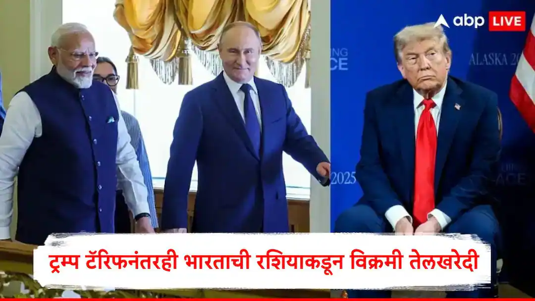 नवी दिल्ली : अमेरिकेचे अध्यक्ष डोनाल्ड ट्रम्प यांनी भारतावर 25 टक्के टॅरिफ लावलं होतं. त्यानंतर रशियाकडून तेल खरेदी करत असल्यानं भारतावर अतिरिक्त 25 टक्के टॅरिफ लादलं. म्हणजेच अमेरिकेनं भारतावर एकूण 50 टक्के टॅरिफ लादलं आहे. ट्रम्प यांच्या टॅरिफचा भारत रशियाकडून तेल खरेदीवर परिणाम झाला नसल्याचं पाहायला मिळतं. कारण, गेल्या काही महिन्यात भारतानं रशियाकडून विक्रमी तेल खरेदी केली आहे. नोव्हेंबरमध्ये भारताची रशियाकडून तेल खरेदी 4 टक्क्यांनी वाढून 2.6 अब्ज यूरो पर्यंत पोहोचली आहे.