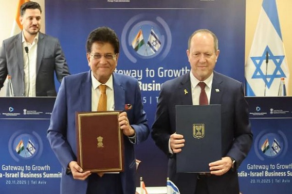 तेल अवीव, 20 नोव्हेंबर. भारत आता इस्रायलसोबतही मुक्त व्यापार करार (FTA) करणार आहे. या दिशेने व्यापार चर्चा सुरू करण्यासाठी दोन्ही देशांनी गुरुवारी टर्म ऑफ रेफरन्सवर स्वाक्षरी केली. भारताचे वाणिज्य आणि उद्योग मंत्री पीयूष गोयल आणि इस्रायलचे आर्थिक व्यापार मंत्री नीर बरकत यांनी यासंदर्भात स्वाक्षरी केली. FTA वाटाघाटीमध्ये वस्तू आणि सेवा या दोन्ही क्षेत्रांचा समावेश केला जाईल.
