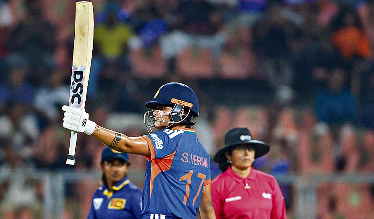 श्रीलंकेच्या गोलंदाजांवर क्रूर हल्ला करण्यापूर्वी शफालीने पहिल्याच षटकात तीन डॉट बॉल्सने सावध सुरुवात केली. तिने माल्शा शेहानीला सहा आणि चार धावांवर खेचले, त्यानंतर निमेषा मदुशानीविरुद्ध सलग चौकार मारले.