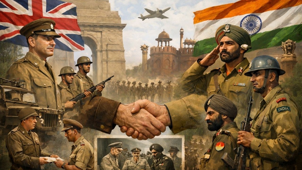 15 ऑगस्ट 1947 रोजी भारताला राजकीय स्वातंत्र्य मिळाले, परंतु प्रशासकीय आणि लष्करी रचनेत बदल एका रात्रीत झाले नाहीत. पुढील दीड वर्षे भारतीय लष्कराची कमान ब्रिटिश अधिकाऱ्यांच्या हाती राहिली. जनरल सर रॉय बुचर हे भारतीय लष्कराचे शेवटचे ब्रिटिश कमांडर-इन-चीफ होते. भारत एक सार्वभौम राष्ट्र होता पण तरीही त्याच्या सैन्याचे नेतृत्व इंग्रज करत होते.