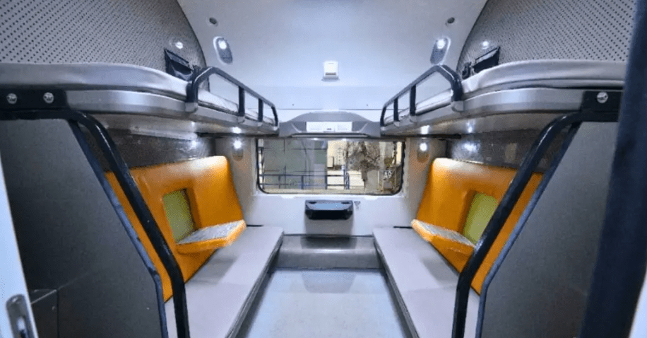 ट्रेनच्या आतील व्हिडिओ सोशल मीडियावर व्हायरल झाला आहे. फर्स्ट एसी कोचचा खाजगी डबा तपशील शेअर केले आहेत. या विहिरी खास आहेत जोडपे / जोडपे प्रवासी प्रवास करताना त्यांना गोपनीयता आणि अधिक आराम मिळावा यासाठी डिझाइन केले आहे. प्रत्येक कूपमध्ये दोन आरामदायी आसन, बाटली साठवण आणि आधुनिक सुविधा आहेत.