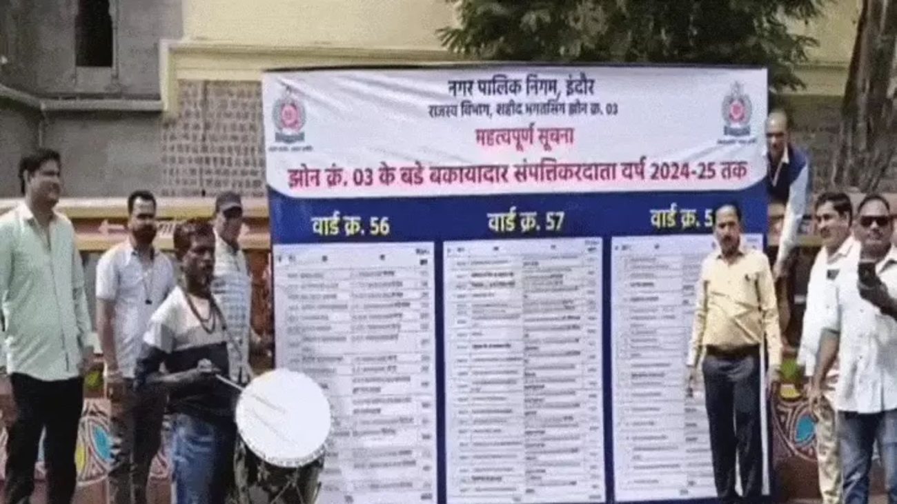 शहरातील बड्या मालमत्ता कर थकबाकीदारांकडून वसूल करण्यासाठी इंदूर महापालिकेने मंगळवारी पुन्हा एकदा अनोखी पद्धत अवलंबली. शहरातील सर्वात वर्दळीचे आणि ऐतिहासिक ठिकाण असलेल्या राजवाडा येथे महापालिकेच्या पथकाने ढोल वाजवताना 57 बड्या थकबाकीदारांची नावे असलेले पोस्टर चिकटवले. या यादीत केवळ थकबाकीदारांची नावेच नाहीत, तर त्यांच्याकडे किती थकबाकी आहे याचाही स्पष्ट उल्लेख आहे, जे एकूण सुमारे २ कोटी रुपये आहे.