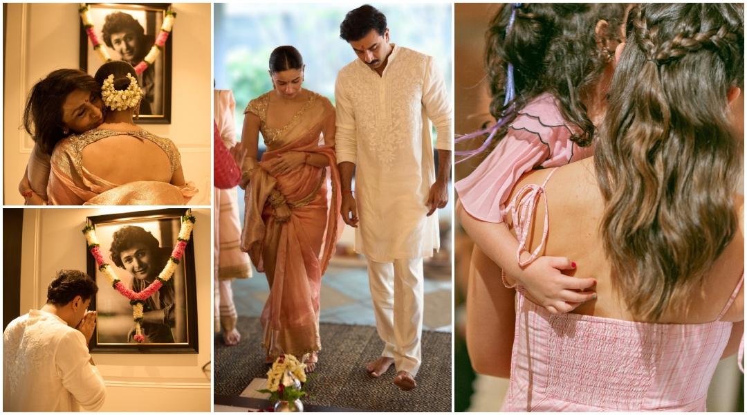 इंस्टाग्राम कॅरोसेल राहा गृह प्रवेश पूजा करताना, नीतू कपूर आलियाला मिठी मारताना आणि रणबीर आणि आलिया त्यांच्या नवीन घरात प्रवेश करताना आणि पारंपारिक गृह प्रवेश विधी करत असताना तिचे लहान हात दाखवते.