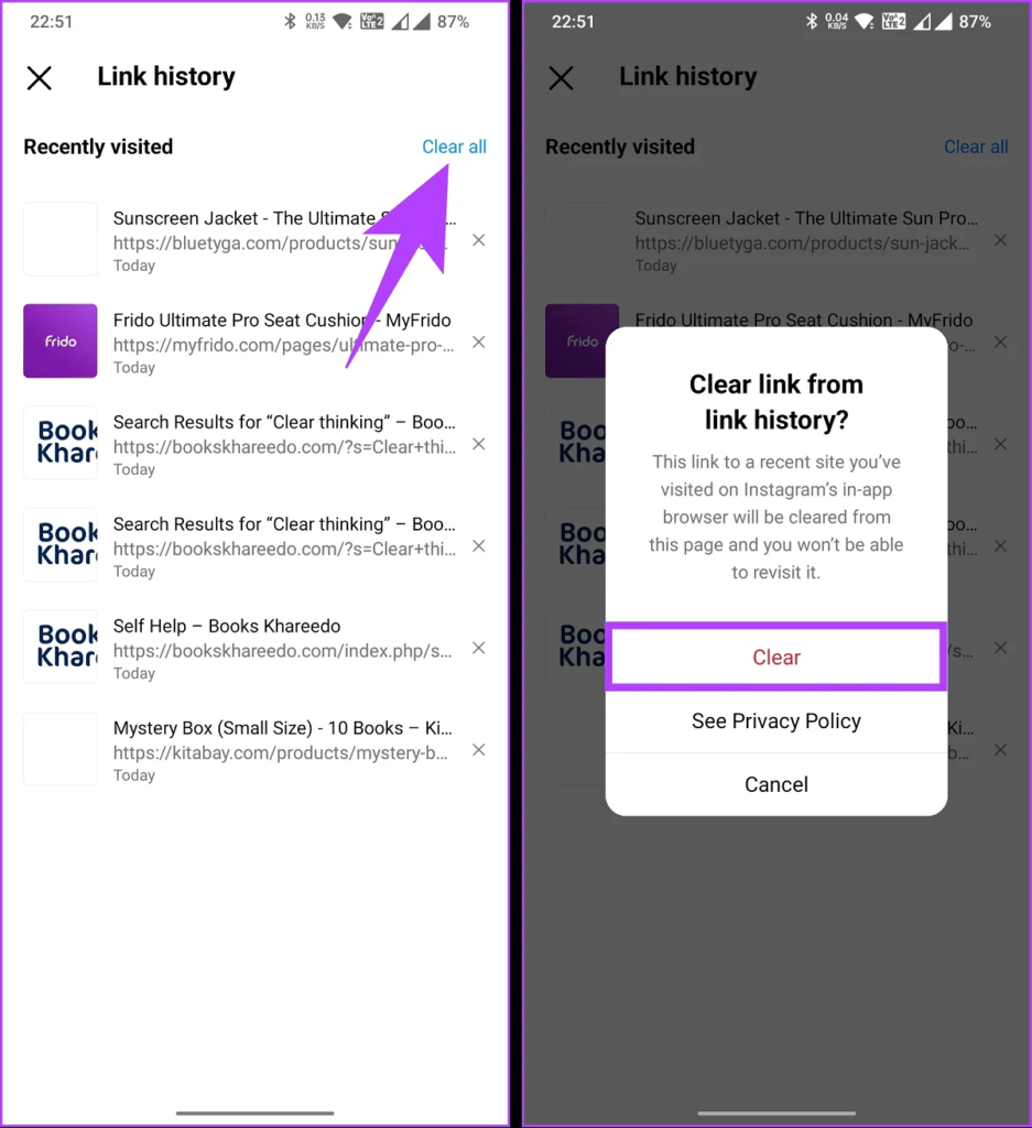 • इंस्टाग्रामवर उघडलेल्या लिंक्स पहा