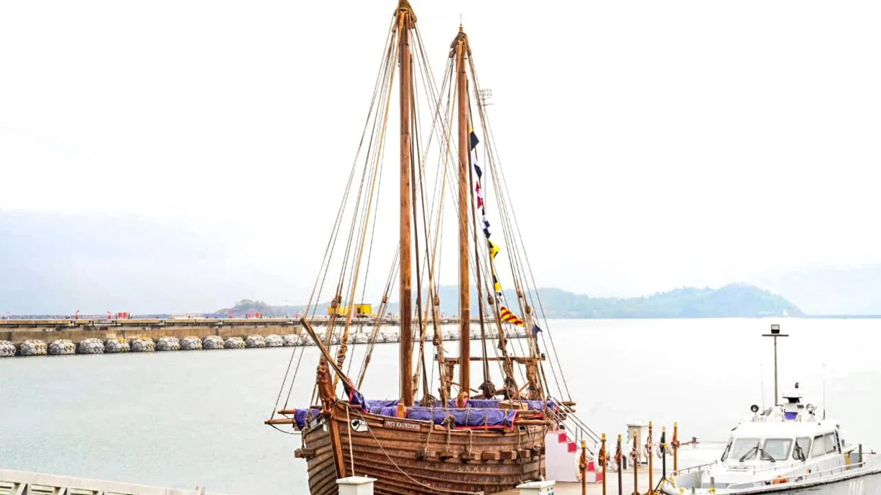 INSV कौंदिन्य, भारतीय नौदलाचे शिलाई केलेले नौकानयन, तिच्या पहिल्या परदेश प्रवासावर आहे.