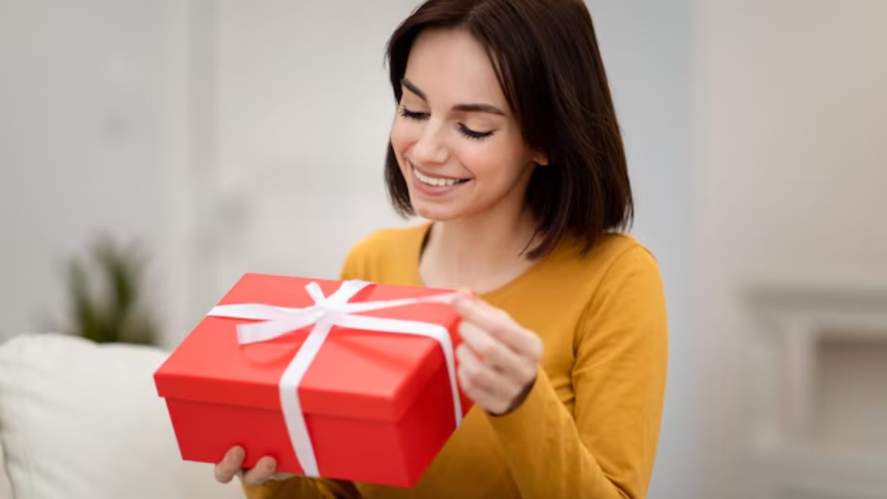 भेटवस्तू उघडणारी स्त्री (सुश्री फ्रिपिक)