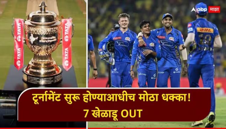 IPL 2026 अपडेट बातम्या : आयपीएल (IPL 2026) चा काउंटडाउन सुरू झाला असून स्पर्धेला आता अवघा आठवडा उरला आहे. मात्र स्पर्धा सुरू होण्याआधीच अनेक संघांना मोठा धक्का बसला आहे. तब्बल 7 खेळाडू बाहेर पडल्याने काही संघांची डोकेदुखी वाढली आहे. विशेष म्हणजे या 7 पैकी 6 खेळाडू हे वेगवान गोलंदाज आहेत. यात 4 ऑस्ट्रेलियन खेळाडूंचा समावेश असून, ज्यांना घेणाच्यासाठी लिलावात मोठी लढत रंगली होती. यामधील एक खेळाडू आयपीएलमध्ये पहिल्यांदाच खेळणार होता, तर एक खेळाडू भारतीय आहे.
