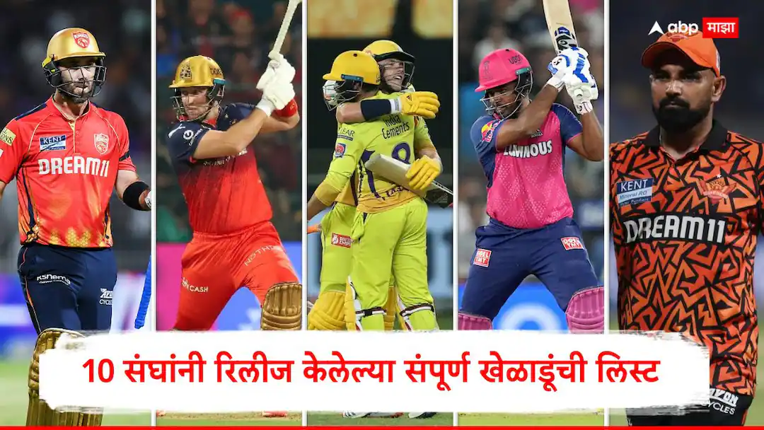 IPL 2026 सर्व संघांची यादी अपडेट: आयपीएल 2026 साठी संघांना आज कोणत्याही परिस्थितीत आपापल्या रिटेन्शन लिस्ट जाहीर कराव्या लागणार आहेत. संजू सॅमसन, रवींद्र जडेजा आणि मोहम्मद शमी यांच्या संभाव्य ट्रेडच्या चर्चेमुळे गेल्या काही दिवसांत इंटरनेटवर चांगलाच गदारोळ माजला होता. मुंबई इंडियन्सने तर शेरफान रदरफोर्ड आणि शार्दुल ठाकूर यांना गुजरात टायटन्स आणि LSG कडे ट्रेडही करून संघात घेतले. मेगा ऑक्शनमध्ये तब्बल 23.75 कोटींना विकत घेतलेल्या वेंकटेश अय्यरपासून ते लियाम लिव्हिंगस्टोन आणि डेवोन कॉनवेपर्यंत अनेक मोठ्या नावांच्या रिलीजच्या चर्चांना जोर आला आहे.