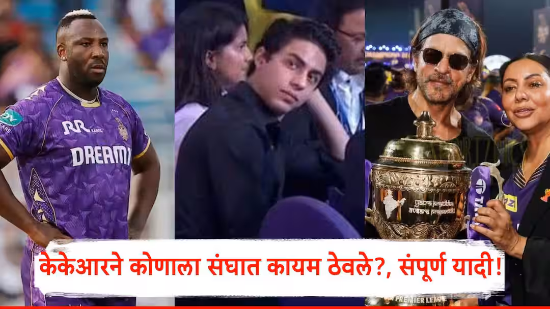 KKR धारणा यादी IPL 2026: आयपीएल 2026 च्या लिलावापूर्वी (IPL 2025) कोलकाता नाईट रायडर्सने (KKR) रिंकू सिंग, सुनील नारायण आणि अजिंक्य रहाणेसह 12 खेळाडूंना रिटेन केले आहे. केकेआरच्या रिटेन्शन यादीमधील सर्वात आश्चर्यकारक बाब म्हणजे आंद्रे रसेललाही रिलीज (KKR Retention List IPL 2026) केले आहे. आंद्र रसेल 2014 पासून केकेआर संघासाठी खेळत आहे. केकेआरने एकूण 9 खेळाडूंना रिलीज केले आहे.