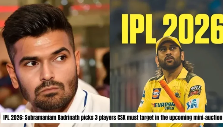 आयपीएल 2026: सुब्रमण्यम बद्रीनाथ यांनी 3 खेळाडू निवडले चेन्नई सुपर किंग्स (CSK) आगामी मिनी-लिलावात लक्ष्य करणे आवश्यक आहे