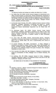तेलंगणात प्रशासकीय फेरबदल (आयपीएस बदली) दिसले आहेत. राज्य सरकारने 7 आयपीएस अधिकाऱ्यांना नवीन पदभार दिला आहे. आयजीपी, महासंचालक आणि एडीजीसह अनेक पदांच्या प्रभारी बदलण्यात आले आहेत. शासनाच्या प्रधान सचिवांनी शुक्रवारी राज्यपालांच्या नावे बदली आणि नियुक्तीसंबंधीचे आदेश जारी केले. रामकृष्ण राव यांनी जारी केला आहे, जो 1 मे 20226 पासून लागू होईल.