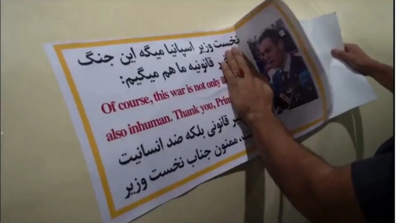 इराणी माध्यमांनी प्रसिद्ध केलेल्या फोटोंमध्ये IRGC सैनिक पेड्रो सांचेझचा फोटो आणि त्याचे युद्धविरोधी संदेश बॅलिस्टिक क्षेपणास्त्रावर चिकटवताना दिसत आहेत. त्यात लिहिले आहे की, “हे युद्ध केवळ बेकायदेशीरच नाही तर ते अमानवीही आहे.” हा संदेश इंग्रजी आणि पर्शियन अशा दोन्ही भाषांमध्ये लिहिला होता. ही पद्धत नवीन नाही.