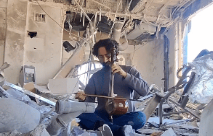 युद्ध आणि संघर्षाच्या सावटाखाली जेव्हा माणुसकी होरपळून निघते, तेव्हा कलाच मनातल्या वेदनांना वाट करून देते. सध्या सोशल मीडियावर असाच एक हृदयद्रावक व्हिडिओ व्हायरल होत आहे, ज्याने जगभरातील नेटकऱ्यांच्या डोळ्यांत पाणी आणले आहे. बॉम्बस्फोटांमुळे उद्ध्वस्त झालेल्या आपल्या संगीत शाळेला एका संगीतकाराने दिलेला शेवटचा निरोप काळजाला भिडणारा आहे. इराणमधील ‘hamidrezaafarideh’ नावाच्या इंस्टाग्राम अकाऊंटवरून शेअर करण्यात आलेल्या या व्हिडिओमध्ये, एक माणूस शाळा उद्ध्वस्त झालेल्या ढिगाऱ्यात बसून आपल्या वाद्यावर एक अत्यंत उदासपणे धून वाजवताना दिसत आहे. त्याच्या या व्हिडीओने साऱ्यांचेच काळीज पिळवटून निघाले आहे.