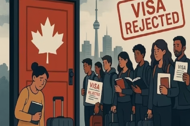 कॅनडा सातत्याने भारतीय विद्यार्थी व्हिसा नाकारत आहे. गेल्या वर्षीच्या तुलनेत, ऑगस्ट 2025 मध्ये कॅनडासाठी चार भारतीय विद्यार्थी व्हिसा अर्जांपैकी जवळजवळ तीन या वर्षी नाकारण्यात आले. वृत्तसंस्था रॉयटर्सच्या अहवालानुसार, 74% नकार दर ऑगस्ट 2023 मधील 32% पेक्षा मोठी वाढ आहे. दोन्ही वर्षांमध्ये जगभरातील सर्व विद्यार्थ्यांच्या परमिट अर्जांपैकी जवळपास 40% नाकारण्यात आले, तर चिनी विद्यार्थ्यांसाठी नकार दर केवळ 24% आहे.