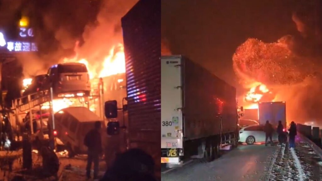 महामार्गावर मृत्यूचा तांडव, 50 वाहने एकमेकांवर आदळली, 20 जळून खाक, VIDEO पाहून हृदय हादरेल