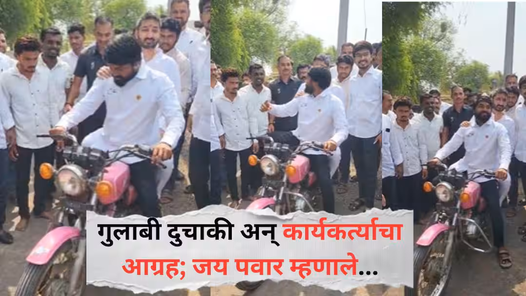 “पाडू नको बरं!” कार्यकर्त्याच्या आग्रहाखातर जय पवार बसले ‘गुलाबी’ दुचाकीवर; बारामतीत मिश्कील टि