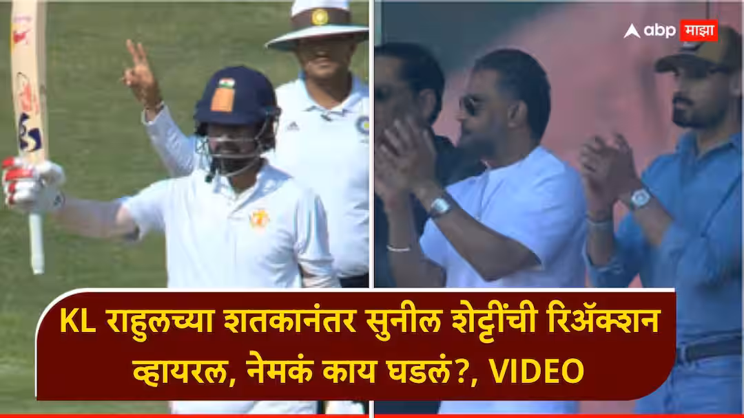 केएल राहुल फलंदाजी करत असताना सुनील शेट्टी यांच्यासोबत राहुलचा अभिनेता आहान शेट्टी देखील स्टँडमध्ये बसून सामन्याचा आनंद घेत होता. राहुलने आपले शतक पूर्ण केले, तेव्हा सुनील शेट्टी यांचा आनंद गगनात मावेनासा झाला. त्यांनी उभे राहून टाळ्या वाजवत आपल्या जावयाचे कौतुक केले. यावेळी त्यांच्या चेहऱ्यावरील अभिमान आणि डोळ्यांतील समाधान स्पष्टपणे दिसून येत होते. सोशल मीडियावर हा व्हिडिओ सध्या तुफान व्हायरल होत आहे. चाहत्यांना सासरा-जावयाचे हे प्रेमळ नाते आणि सुनील शेट्टींची ही रिॲक्शन खूपच आवडली आहे.