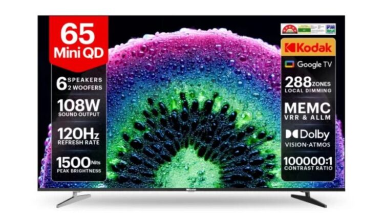 Kodak चा 65-इंचाचा Mini LED 4K TV भारतात लाँच, 108W स्पीकर सिस्टम उपलब्ध