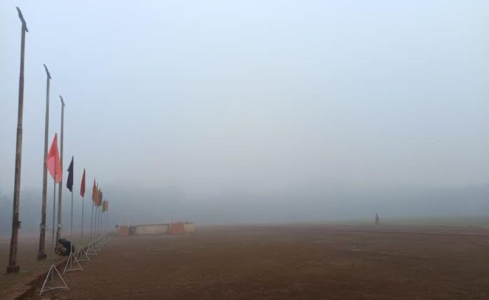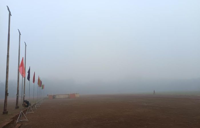 मिनी महाबळेश्वर म्हणून ओळख असलेल्या दापोलीवर शनिवारी 8 नोव्हेंबर रोजी दाट धुक्याची दुलई पसरल्याने वाहनचालकांना यातून मार्ग काढणे कठीण होत होते. डॉ.बाळासाहेब सावंत कोकण कृषी विद्यापीठाच्या विजय मैदानावर खेळाचा सराव करण्यासाठी सकाळी आलेल्या विद्यार्थ्यांना सगळीकडेच पसरलेल्या दाट धुक्याच्या दुलईचा सामना करतच खेळाचा सराव करावा लागला अनपेक्षितपणे घडलेल्या या प्रकारामुळे सर्वजण चांगलेच सुखावले.