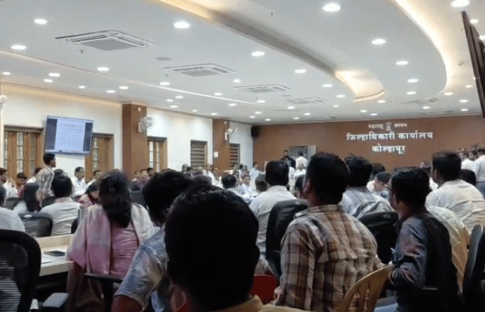 Kolhapur News – जिल्हाधिकारी कार्यालयातील कोट्यवधी खर्चून बांधलेल्या सभागृहाला गळती! पालकमंत्र्यांच्या बैठकीतच निकृष्ट कामाचे प्रदर्शन