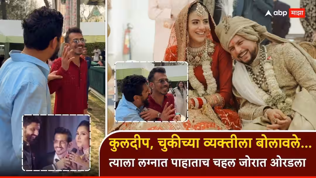 कुलदीप यादव वंशिका लग्नाच्या बातम्या : भारताचा स्टार फिरकीपटू कुलदीप यादव (Kuldeep Yadav) अखेर लग्नबंधनात अडकला आहे. कुलदीपने 14 मार्च रोजी बालमैत्रीण वंशिका चड्ढासोबत लग्नगाठ बांधली. उत्तराखंडमधील मसूरी येथील आलिशान सॅवॉय हॉटेल, मसुरी येथे हा शाही विवाहसोहळा पार पडला. या सोहळ्यासाठी दोन्ही कुटुंबीय, जवळचे मित्र आणि क्रिकेटविश्वातील अनेक दिग्गज उपस्थित होते. या लग्नाचे अनेक व्हिडिओ सध्या सोशल मीडियावर तुफान व्हायरल होत आहेत. विशेष म्हणजे या लग्नात असा एक व्यक्तीही दिसला, जो याआधी युझवेंद्र चहल (Yuzvendra Chahal) आणि धनश्री वर्माच्या (Dhanashree Verma) लग्नातही उपस्थित होता. यावर चहलची मजेशीर प्रतिक्रिया चर्चेचा विषय ठरली आहे.