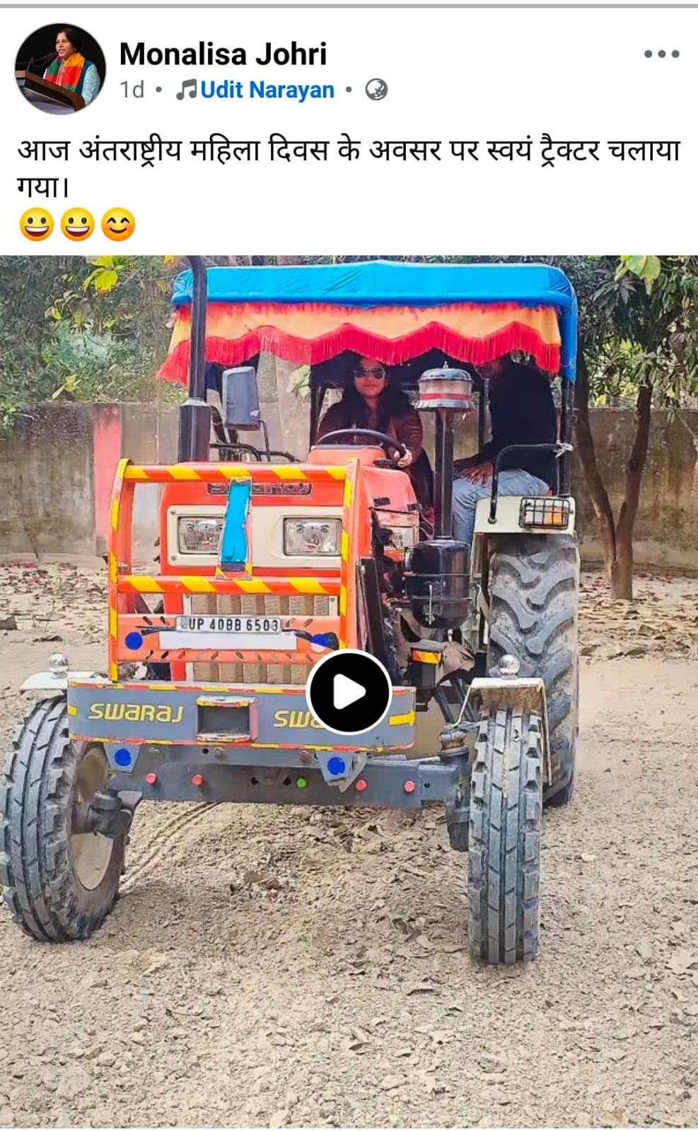 व्हायरल होत असलेल्या या व्हिडिओमध्ये एसडीएम मोनालिसा जोहरी मोठ्या आत्मविश्वासाने ट्रॅक्टर-ट्रॉली चालवताना दिसत आहेत. व्हिडिओच्या पार्श्वभूमीवर बॉलिवूडचे सुपरहिट गाणे “बडे मियाँ बडे मियाँ, छोटे मियाँ सुभानल्लाह” रिंग अप असे सांगितले जात आहे की एसडीएमने स्वतः हा व्हिडिओ त्यांच्या सोशल मीडिया हँडलवर शेअर केला होता, त्यानंतर काही तासांतच तो हजारो वेळा पाहिला गेला आहे.