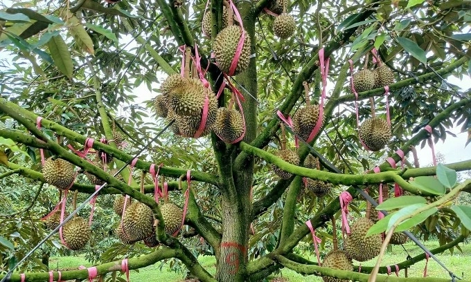लाओसमधील व्हिएतनामी कृषी क्षेत्रातील दिग्गज होआंग आन्ह गिया लाइच्या शेतात ड्युरियन्स दिसले. वाचा/थी हा द्वारे फोटो |