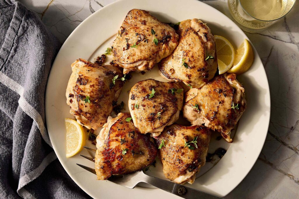 लिंबू आणि थायम भाजलेले चिकन मांडी