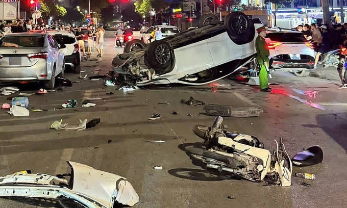 हनोईमध्ये लाल दिव्याजवळ थांबलेल्या अनेक वाहनांना त्याच्या लेक्ससने धडक दिल्याने एका ड्रायव्हरला गुन्हेगारी रीतीने ताब्यात घेण्यात आले आहे, ज्यामुळे दोन लोक जखमी झाले आहेत.
