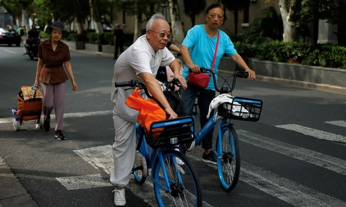 28 सप्टेंबर 2024 रोजी चीनमधील शांघाय येथील रस्त्यावर बाईक-शेअरिंग सेवेतून वृद्ध लोक बाइक चालवत आहेत. रॉयटर्सचा फोटो |