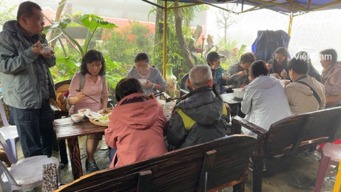 30 सप्टेंबर 2025 रोजी भूस्खलन झाल्यामुळे तैवानचे पर्यटक लाओ कै प्रांतामधील श्री. हूंगच्या घरी दुपारच्या जेवणाचा आनंद घेतात. फॅम हूंगच्या फोटो सौजन्याने फोटो सौजन्याने