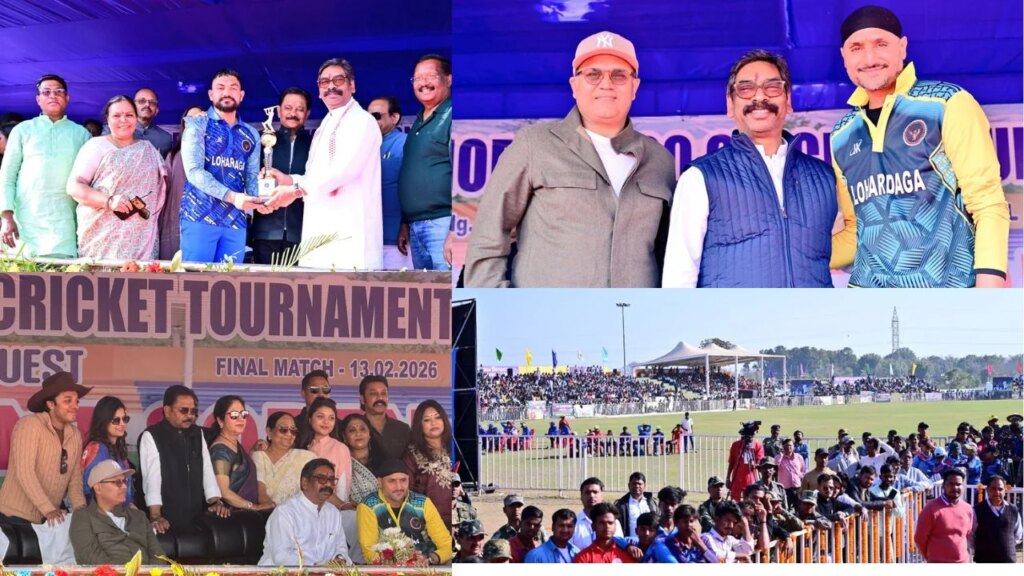 लोहरदगाने T-20 सामन्याच्या अंतिम सामन्यात पलामूचा पराभव केला, सेहवाग आणि हरभजनने मुख्यमंत्री हेमंत सोरेनसोबत सामन्याचा आनंद लुटला.