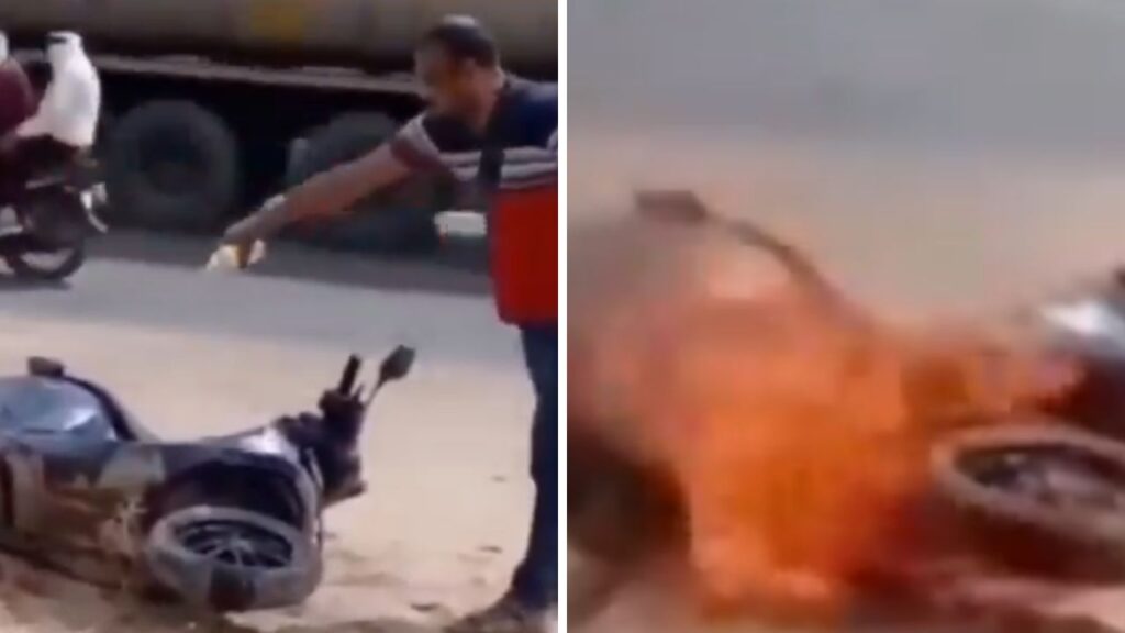 गुजरात: मॅनने शोरूमच्या बाहेर ओला स्कूटरला आग लावली, असा आरोप कंपनीच्या कर्मचार्यांनी आपली तक्रार केली.@bhash आपल्या ग्राहकांची निराशा हे दर्शविते की आपण काय स्वत: ला आहे. Pic.twitter.com/kjsfc2jrfr