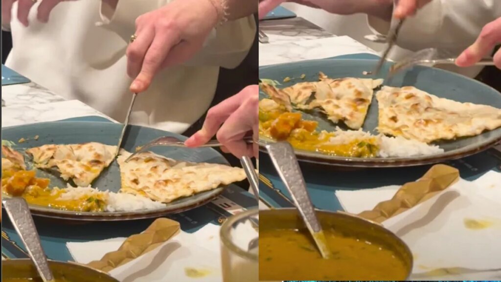 नान हे जगभरातील सर्वात ओळखल्या जाणाऱ्या भारतीय ब्रेडपैकी एक आहे. पारंपारिकपणे तंदूरमध्ये भाजलेले, ते त्याच्या फ्लफी पोत आणि जळलेल्या डागांसाठी ओळखले जाते. भारतीय संस्कृतीत, भाकरी सामान्यतः हाताने खाल्ली जाते. लहान तुकडे फाडले जातात, दुमडले जातात आणि करी किंवा भाज्या काढण्यासाठी वापरतात. मात्र, दरवेळी तसे होताना दिसत नाही. अलीकडेच, @mitali.talks या इंस्टाग्राम वापरकर्त्याने शेअर केलेल्या व्हिडिओमध्ये डच महिला नान खाण्यासाठी काटा आणि चाकू वापरताना दिसत आहे. ॲमस्टरडॅमच्या एका रेस्टॉरंटमध्ये चित्रित झालेल्या या क्लिपची सुरुवात स्त्रीने नानला काटा आणि चाकूने दाबून ते स्थिर करण्यासाठी केली. त्यानंतर ती त्यावर भारतीय डिश ठेवण्यापूर्वी त्याचा एक तुकडा अचूकपणे कापते. ती शेवटी हात वापरून नान उचलते आणि रोलसारखे खाते. व्हिडिओवरील मजकूर असा आहे, “माझ्या डच सहकाऱ्याला भारतीय जेवणासाठी घेऊन गेलो.”