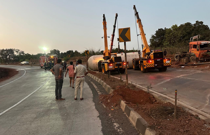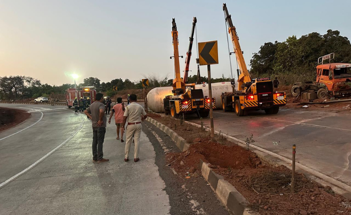 मुंबई – गोवा महामार्गावर एलपीजी गॅस टॅंकर पलटी