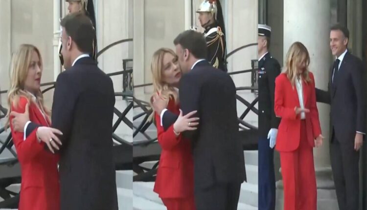 फ्रान्सचे अध्यक्ष मॅक्रॉन आणि इटालियन पंतप्रधान ज्योर्जिया मेलोनी एका विचित्र क्षणात – मॅक्रॉनची “आक्रमक” मिठी आणि चुंबन, त्यानंतर एक विचित्र देखावा आणि हसत हसत. मागील सभांमध्ये मेलोनीने वारंवार फ्रेंच राष्ट्राध्यक्षांबद्दल नाराजी व्यक्त केली आहे.