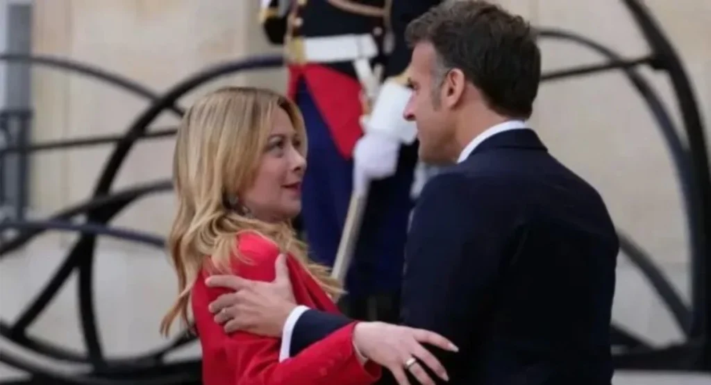 मॅक्रॉन-मेलोनी पॅरिस शिखर परिषद मॅक्रॉनने अचानक तिचे अशा प्रकारे स्वागत केल्याने जॉर्जिया मेलोनीला काही क्षणांसाठी धक्काच बसला. त्याच्या चेहऱ्यावर आश्चर्य स्पष्ट दिसत होते आणि त्याचे डोळेही थोडे विस्फारले होते.