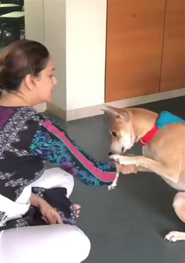 व्हिडिओ मॉन्टेज माधुरी जमिनीवर बसलेली असताना उघडते कारण त्यांचा एक पाळीव कुत्रा हळुवारपणे तिचा पंजा तिच्या हातात ठेवतो आणि गोंडस हँडशेक देतो. दुसऱ्या क्लिपमध्ये, ती लाकडी फरशीवर बसून त्यांच्या पाळीव प्राण्यांना जेवण देताना आणि त्यांना शिस्त आणि मूलभूत हावभाव शिकायला लावताना दिसत आहे. आणखी एक स्पष्ट क्षण दाखवतो की डॉ. नेने त्यांच्या तपकिरी पाळीव प्राण्याला कॅमेराजवळ धरून ठेवतात आणि दुसऱ्या क्लिपमध्ये, त्यांचे कुत्रे उत्साहाने शेपटी फिरवतात आणि त्यांच्यावर उडी मारतात तेव्हा कुटुंब एकत्र उभे राहू शकते. मॉन्टेजमध्ये डॉ नेने गिटार वाजवताना देखील दाखवले आहेत तर त्यांच्यापैकी एक कुतूहलाने त्याच्या विरोधात उभा राहतो.