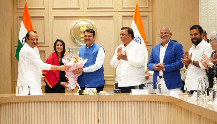 नवी दिल्ली: महाराष्ट्राचे मुख्यमंत्री देवेंद्र फडणवीस शुक्रवारी राज्यातून भारताच्या महिला विश्वचषक विजेत्या संघाच्या सदस्य स्मृती मानधना, जेमिमाह रॉड्रिग्स आणि राधा यादव यांचा सत्कार केला आणि प्रत्येकी 2.25 कोटी रुपयांचे रोख बक्षीस दिले.