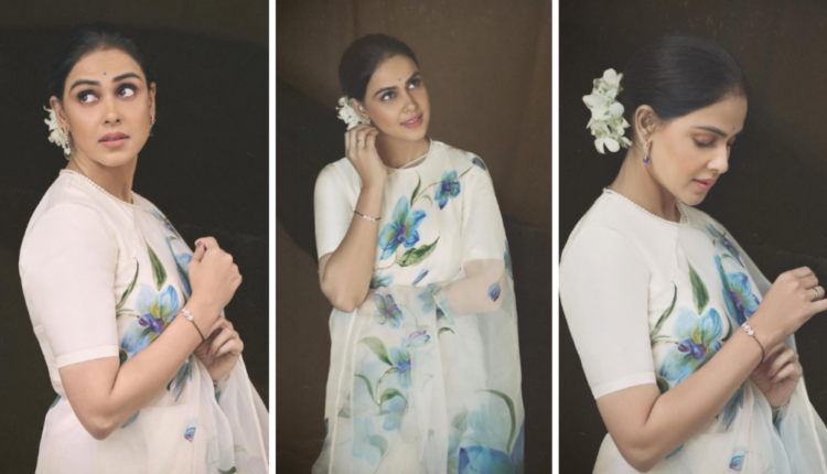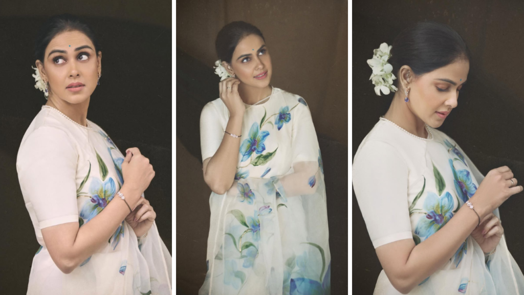 जेनेलियाने पांढऱ्या आणि निळ्या रंगाची ऑर्गेन्झा साडी परिधान केली आहे. सध्या ऑर्गेन्झा साड्या पुन्हा ट्रेंडमध्ये आहेत. या साडीमध्ये जेनेलिया अगदी सुंदर दिसत आहे आणि याशिवाय, तिच्या लूकने चाहत्यांना आश्चर्यचकित केले आहे. जेनेलियाला जुन्या नायिकेची आभा आहे आणि ती लूक उत्तम प्रकारे कॅरी करते.