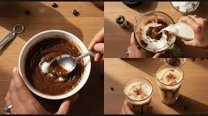 1. कॉफी मिक्स तयार करा: सर्व प्रथम, एका लहान भांड्यात 2 चमचे कॉफी पावडर आणि साखर घाला. त्यात थोडे कोमट पाणी घालून साखर विरघळेपर्यंत चांगले फेटून घ्या.
