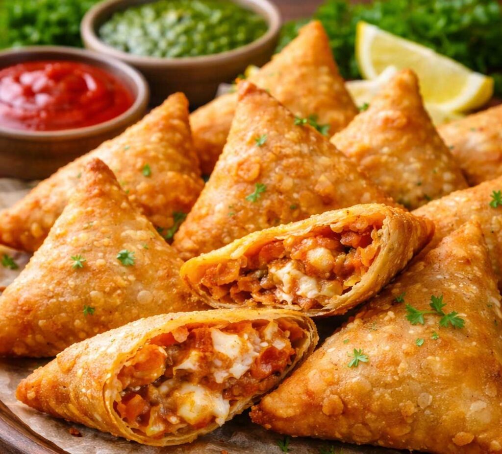 अभ्यासक्रम: चिकन पिझ्झा समोसा रेसिपी