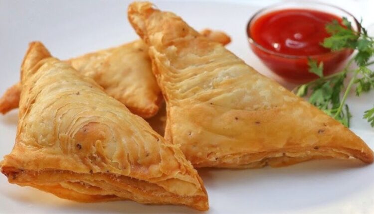 पायरी 6 – नंतर, मध्यभागी कापून त्याचे 4 तुकडे करा. आता एक तुकडा घ्या आणि थोडासा रोल करा. नंतर, त्यात बटाट्याचे सारण भरा, बाजूंना पाणी लावा आणि त्रिकोणाच्या आकारात पॅक करा.