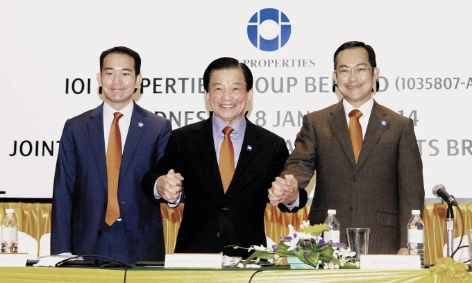ली शिन चेंग (मध्यभागी), IOI ग्रुपचे दिवंगत संस्थापक, त्यांचा धाकटा मुलगा ली येव सेंग (डावीकडे) आणि मोठा मुलगा ली येव चोर (उजवीकडे). कंपनीच्या वेबसाइटवरून फोटो |