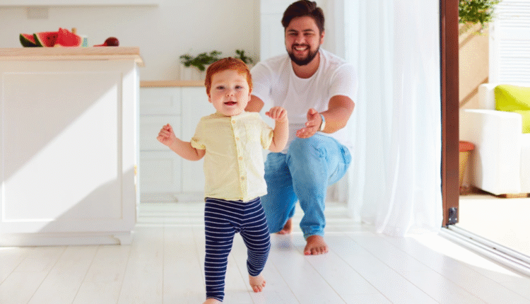 आपल्या मुलीला शिकण्यासाठी आईच्या प्रतिक्रियेने गोंधळलेल्या माणसाने बाळाची काळजी घेत असताना तिचे पहिले पाऊल उचलले