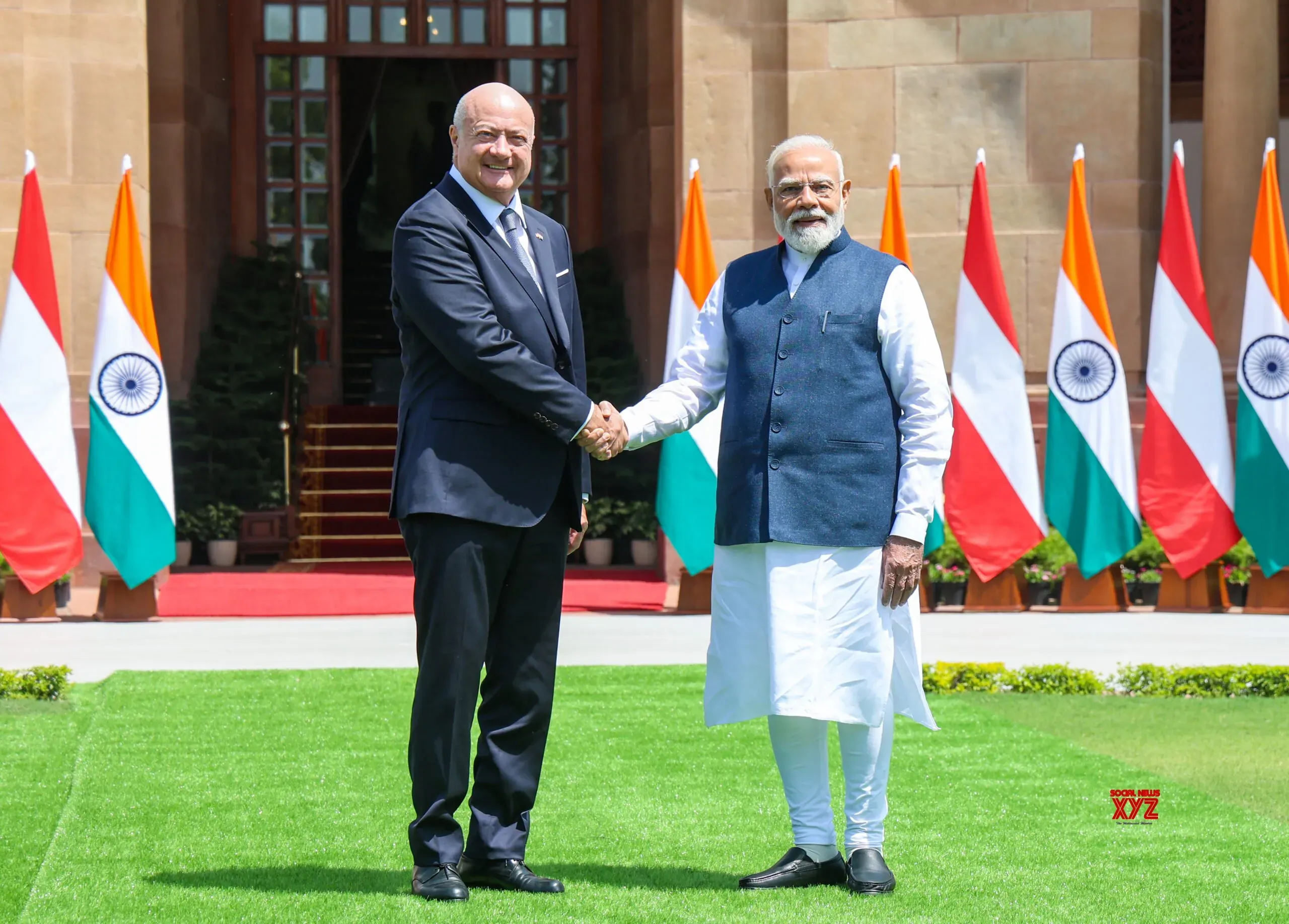 पंतप्रधान नरेंद्र मोदींनी गुरुवारी नवी दिल्लीच्या हैदराबाद हाउसमध्ये ऑस्ट्रियाचे चॅन्सेलर डॉ. क्रिश्चियन स्टॉकर यांच्यासोबत महत्त्वपूर्ण बैठक घेतली आहे. या बैठकीचा मुख्य उद्देश भारत आणि ऑस्ट्रियादरम्यान परस्पर संबंधांना आणखी मजबूत करणे आहे. बैठकीदरम्यान विदेशमंत्री जयशंकर आणि केंद्रीय वाणिज्यमंत्री पियूष गोयल देखील उपस्थित होते. या बैठकीदरम्यान दोन्ही देशांदरम्यान अनेक महत्त्वपूर्ण करारांवर स्वाक्षरी झाली आहे.